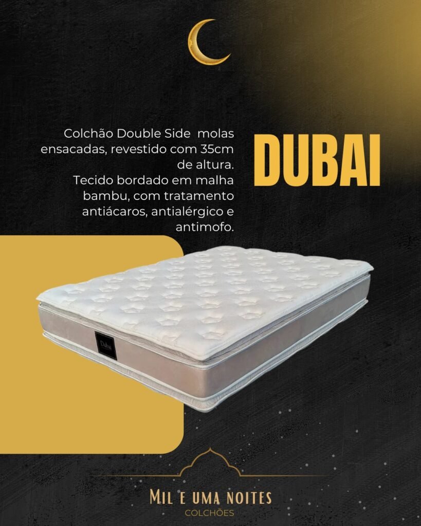 Conheça o Colchão Dubai, um colchão Double Side de molas ensacadas, revestido com 35cm de altura. Tecido bordado em malha bambu, com tratamento antiácaros, antialérgico e antimofo.